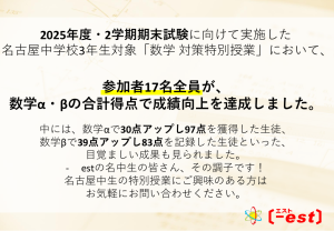 名古屋中 2年生/3年生の数学・3年生の英語の対策特別授業にて、